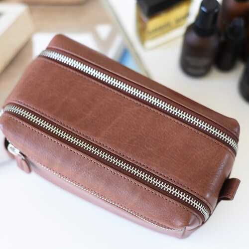 Double Zipper Leather Toiletry Bag Personalized Shaving Bag Etsy